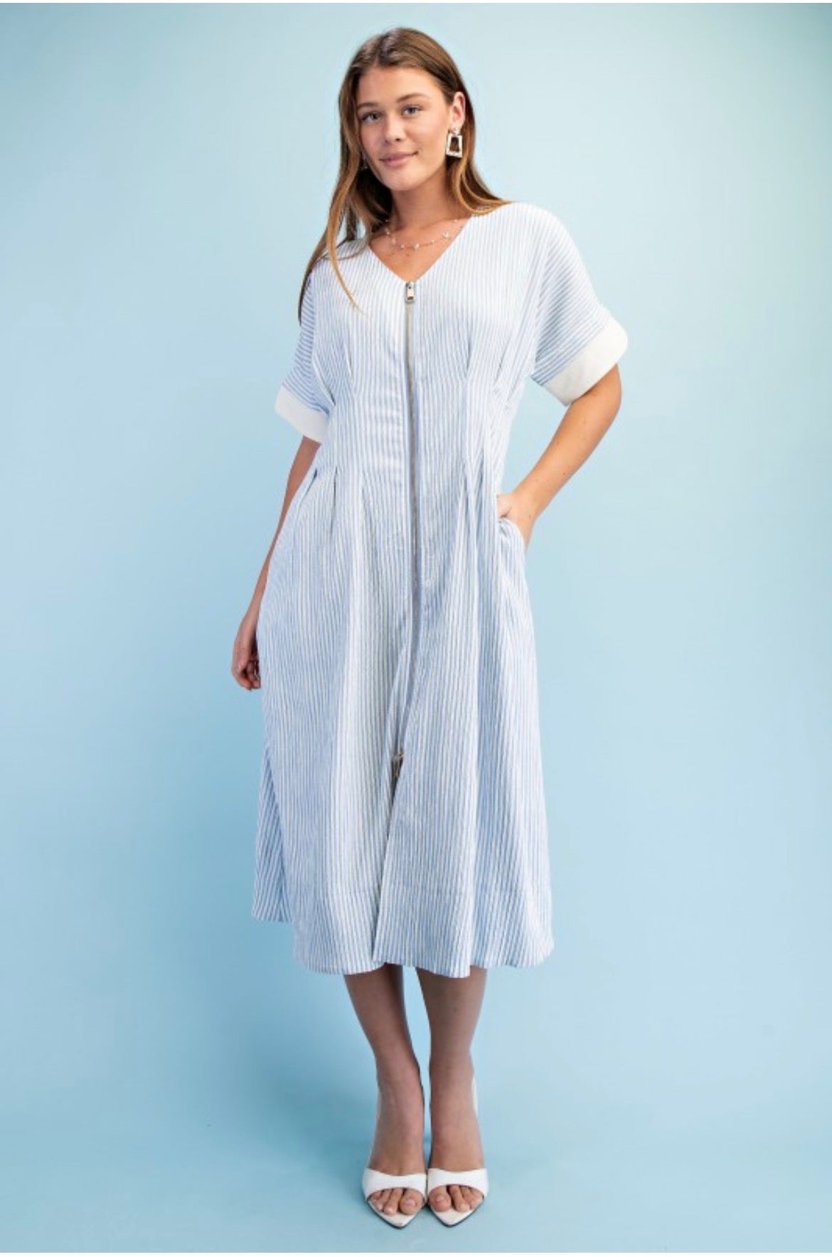 Blue Striped Zipper Midi